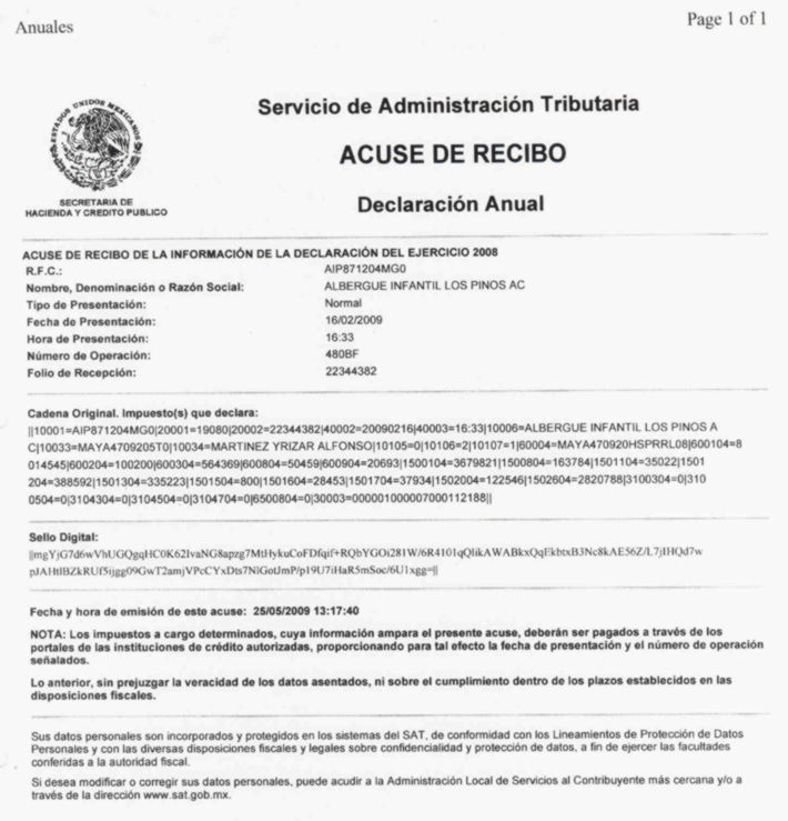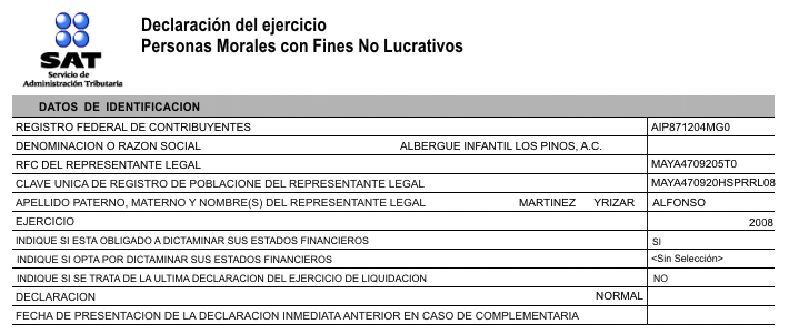 Declaración Anual del Ejercicio 2008